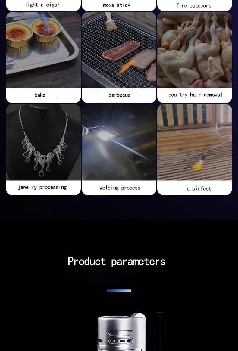 Jet flame technology resists wind interference, while the inflatable butane system allows easy refilling for repeated use.