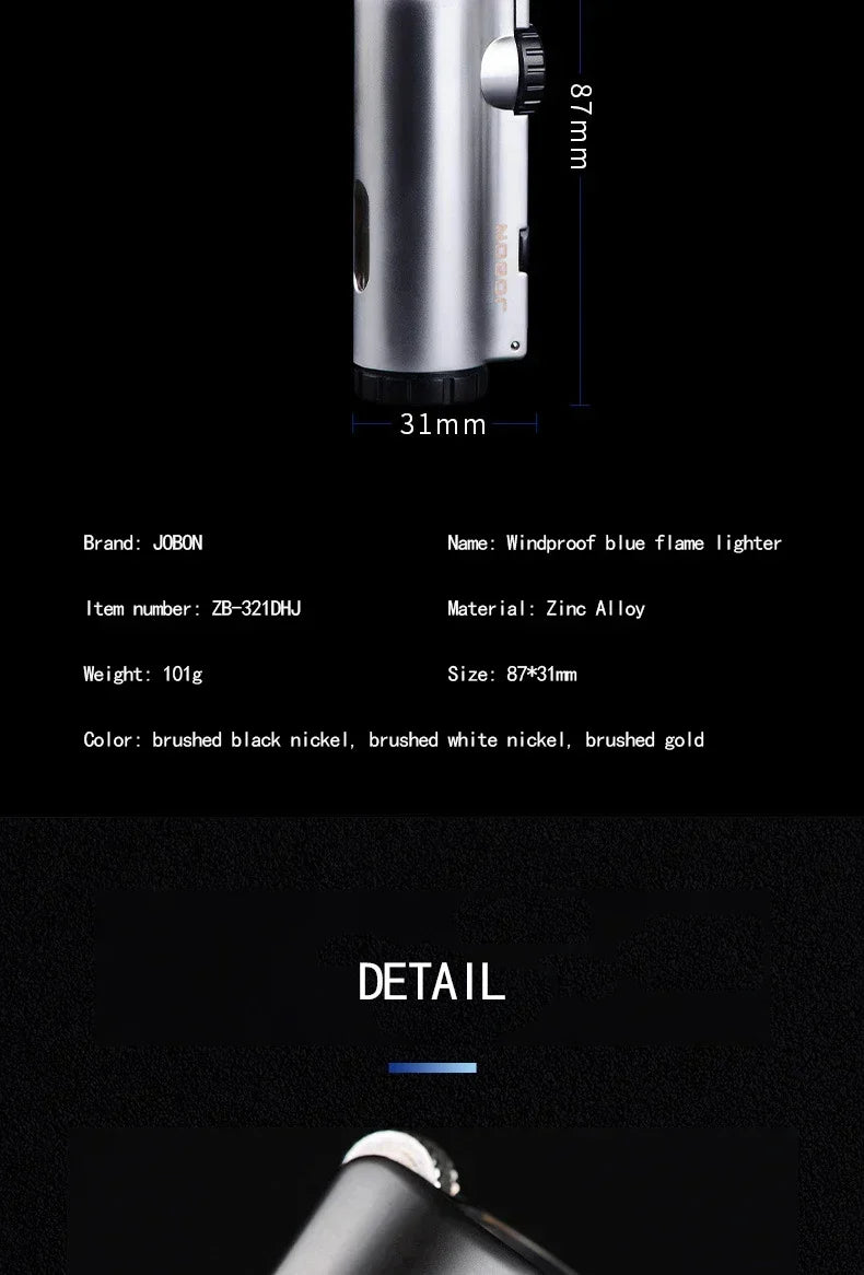 The JOBON 4-Torch Jet Windproof Lighter is a premium ignition tool engineered for powerful performance, durability, and refined style. Featuring four high-intensity jet flames, this lighter delivers fast, consistent ignition even in strong wind conditions, making it ideal for cigars, cigarettes, outdoor use, and gifting.