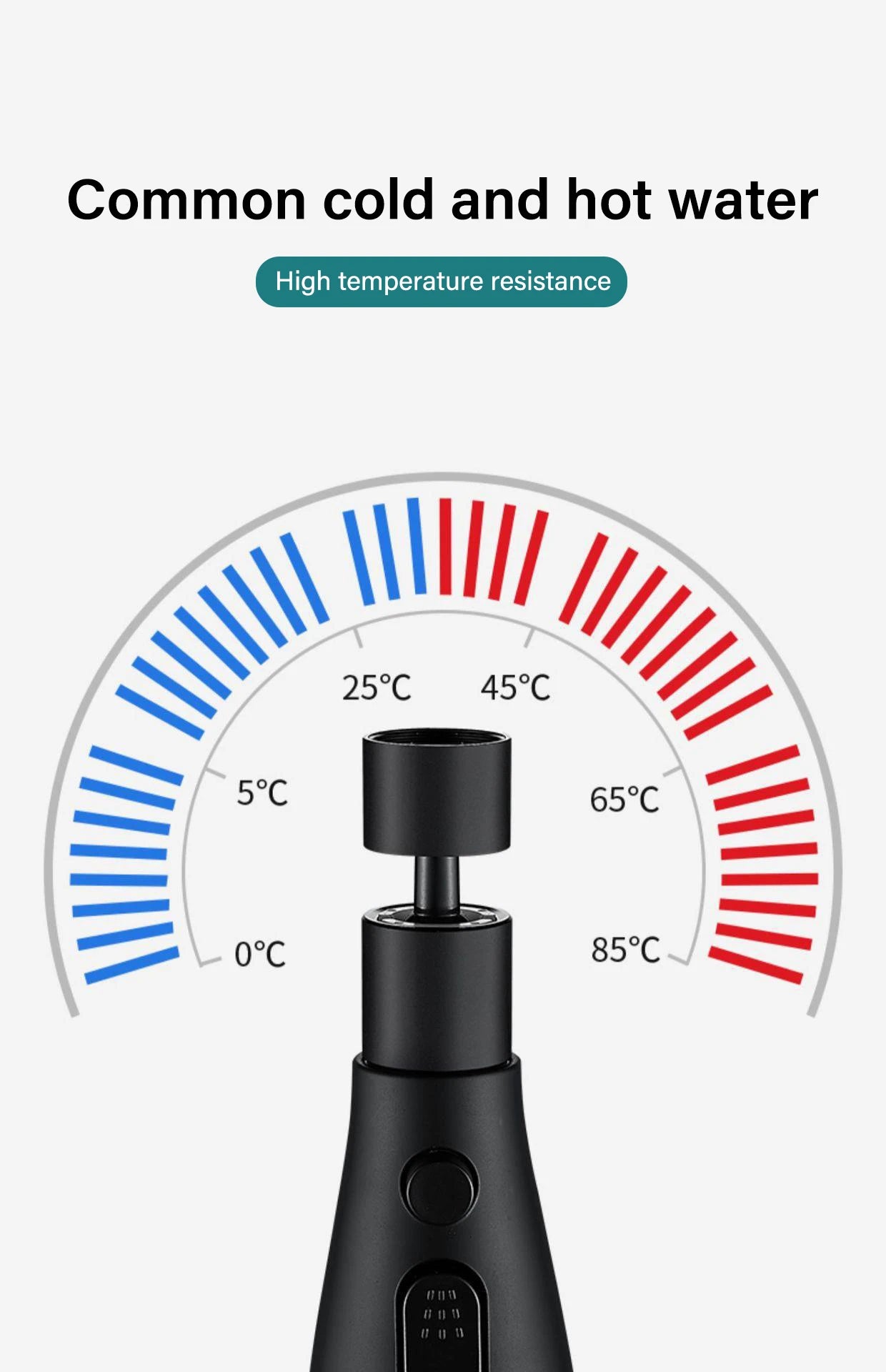 Designed with two independent rotating axes, allowing full 720° rotation. Easily clean hard-to-reach corners of the sink without splashing.