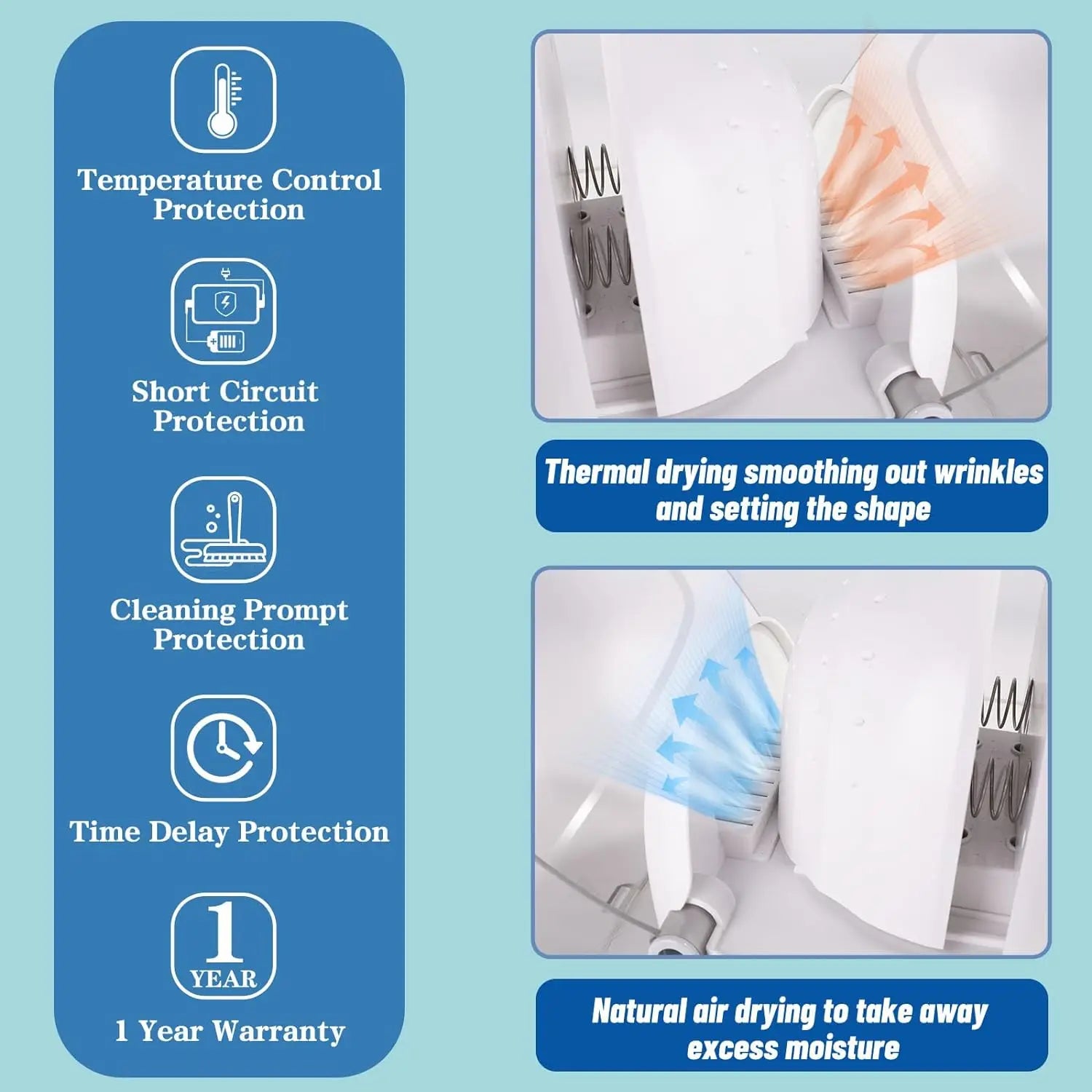 With a one-button automatic 30-minute cycle, the machine performs steam treatment, thermal drying, and natural air drying in sequence to help flatten wrinkles and restore structure. Suitable for various hat styles including baseball caps, trucker hats, bucket hats, beanies, cloche hats, and more.