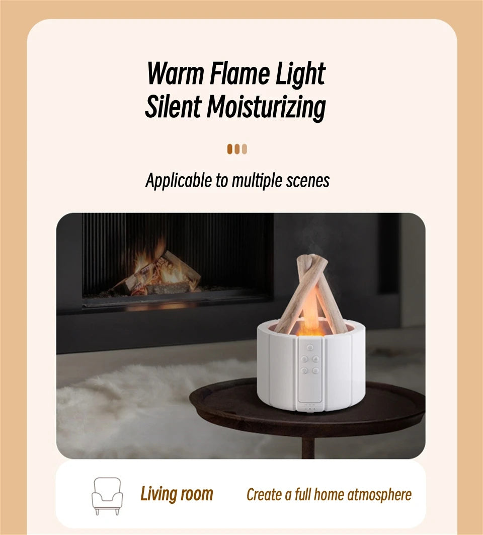 Crafted with precision, the Bonfire Oil Diffuser features a sleek, minimalist base that complements any room décor—from modern minimalist to rustic aesthetics. The “wooden logs” inside are designed to enhance the illusion of burning firewood, creating a tranquil atmosphere without heat or smoke. The LED flame brightness and mist intensity are adjustable, allowing you to customize your environment to match your mood, whether you seek a subtle ambiance or a glowing centerpiece.