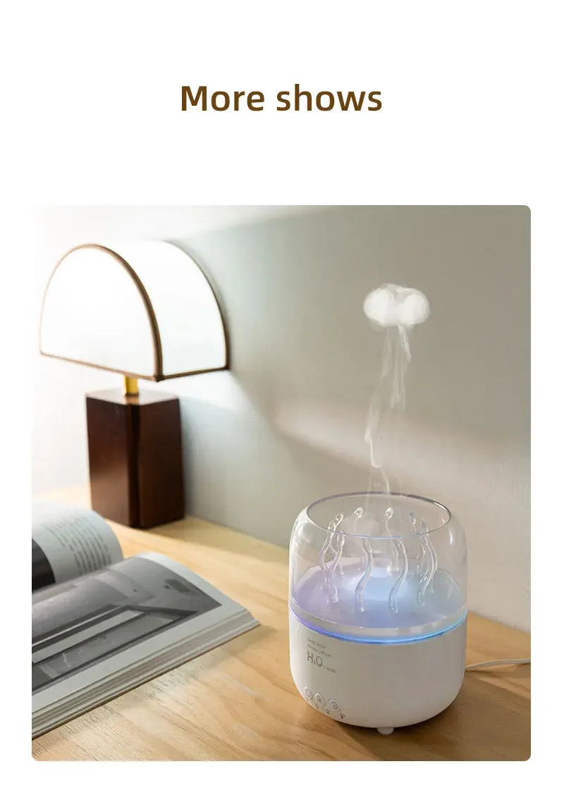 Short press the power button to switch between jellyfish mode, heavy fog mode, or power off. Long press to activate or disable rotation for dynamic mist diffusion.