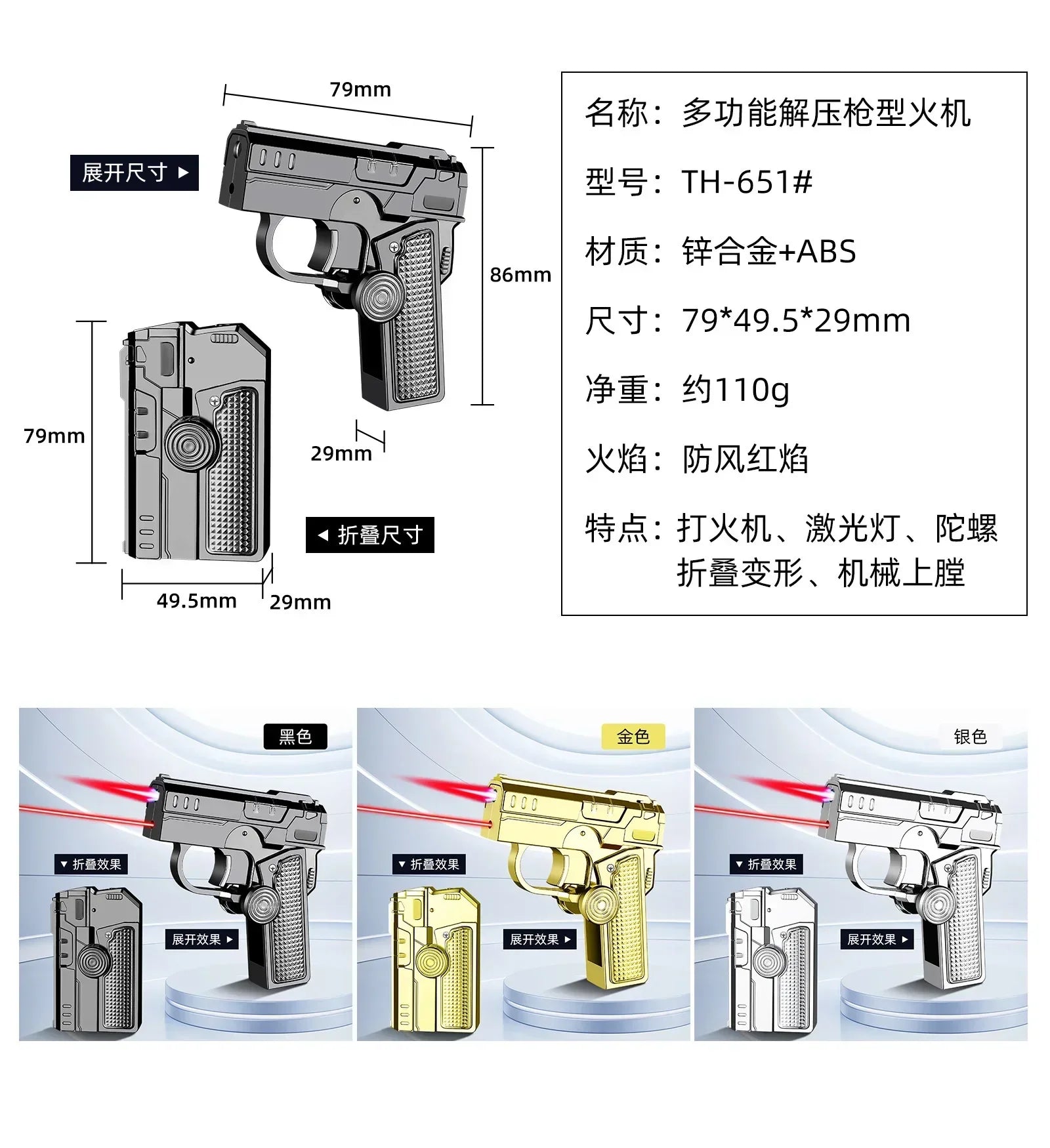 Metal Folding Gun-Style Jet Lighter – Windproof Butane Gas Red Flame Gyroscope Lighter with Laser