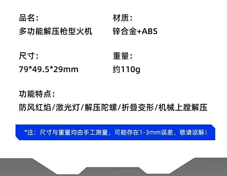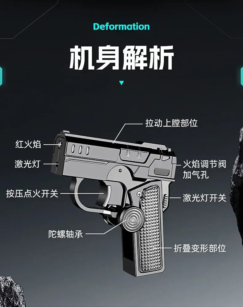 The Metal Folding Gun-Style Jet Lighter is a compact, high-performance ignition tool designed for users who value precision, durability, and distinctive styling. Featuring a foldable gun-inspired form, powerful windproof jet flame, and integrated laser, this lighter delivers reliable performance in outdoor and everyday scenarios.