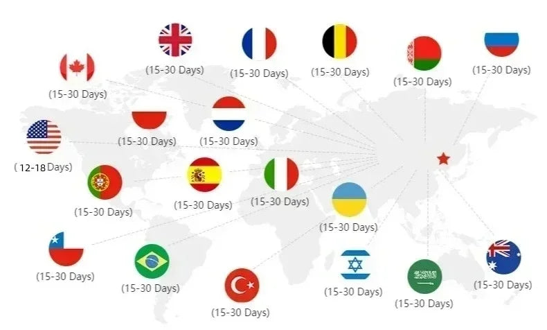 Asia(Except Vietnam and Hong Kong and India*) | 15-35 Business days |