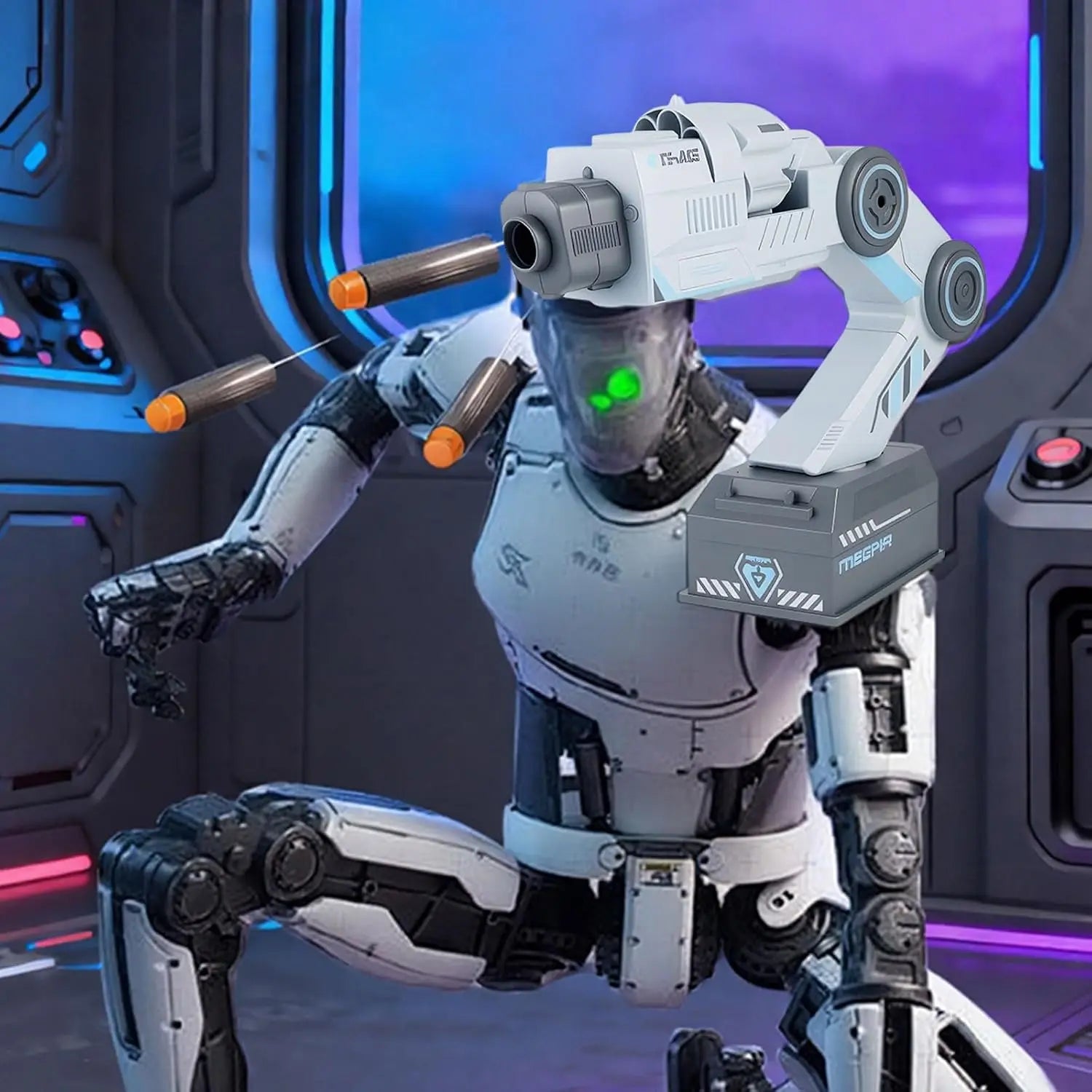 Smart motion tracking creates a realistic “aiming” effect, turning head movement into dynamic targeting for exciting futuristic play.