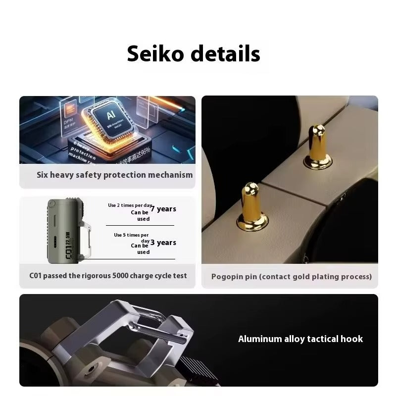 The design combines practicality and aesthetics. Its metallic body offers a modern tactical look while ensuring heat resistance and protection from wear and tear. The integrated buckle not only provides convenience but also serves as a secure carrying mechanism, ensuring your power bank is always within reach. With its compact size, it fits effortlessly into small bags or pockets, adding no unnecessary bulk.