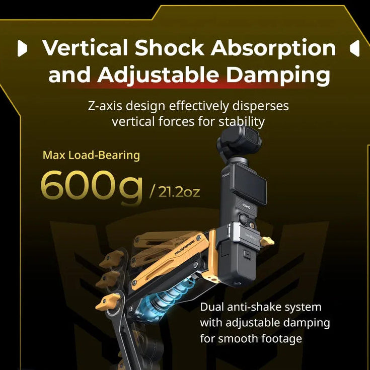 Equipped with both spring and hydraulic damping mechanisms, this dual-layer anti-shake design significantly reduces vertical vibration, delivering smoother, more stable footage during motion-intensive shooting.