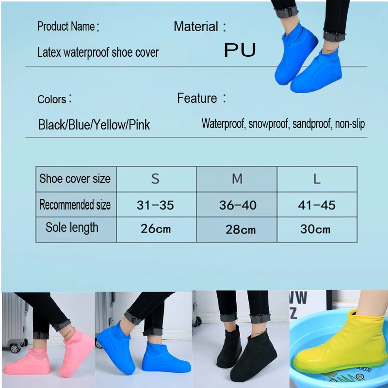 This product is a silicone shoe cover. It is a slip-on, ready-to-wear shoe cover perfect for the rainy weather. It is easy to use, and you can use it anywhere at your convenience. This product keeps your shoes clean from mud and water. Moreover, it will keep your shoes and socks dry while walking in the rain. This product is ideal for students, workers, and commuters. The rain can cause mud and flooding, so it is best to carry a pair of shoe covers in your bag wherever you go. This product is highly recommended for commuting workers. It will keep your shoes clean and ready for work while on the road.
